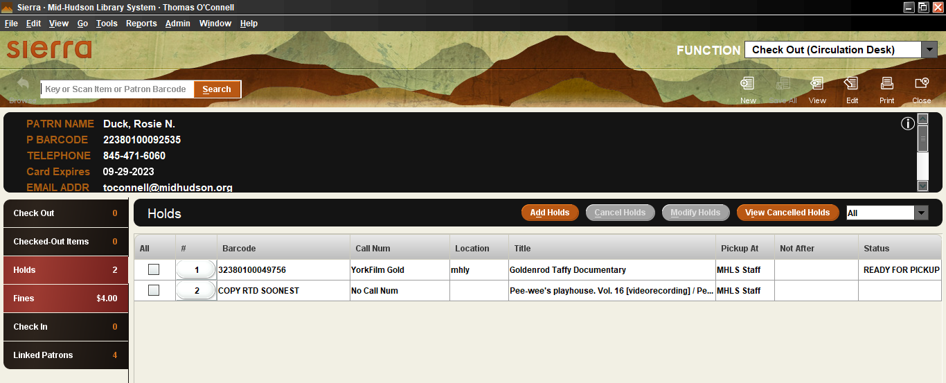 Holds management is mainly handled by the patron from their account online, but library staff can also place and cancel holds for patrons.